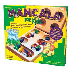 Mancala for Kids is a special kids edition that replaces gemstones with cute plastic animals. To start, place all the animals in the pockets of the board. When it is your turn, choose a pocket and scoop up all the animals in it, then drop them back into the pockets one-by-one as you circle the board. With just a few easy rules to follow, the object is to collect the most animals by the end of the game. All the pieces go back inside the game unit, which folds up for easy storage. For 2 players aged 6 and up.Includes: