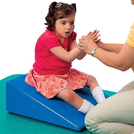 Skillbuilders offers therapy and exercise wedges with a special coating that is water, stain and odor-resistant. Created with non-toxic materials that is easily cleaned. Their durable construction makes them virtually maintenance free. Ideal for institutional use in physical therapy departments, home use, special education programs, pre-school programs, physical education classes and the gym. Measures 10 H x 24 W x 26 L inches.