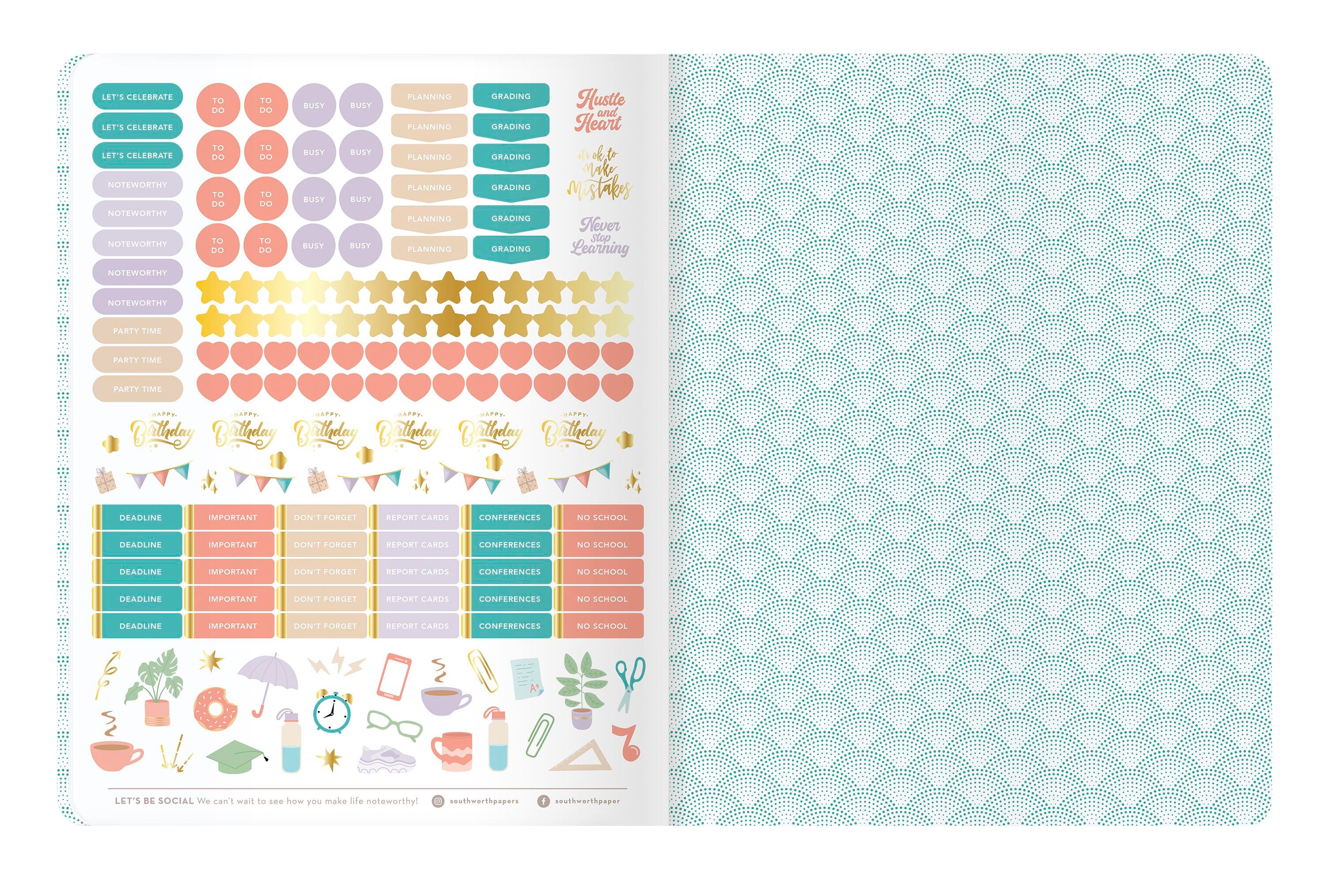Southworth Undated Teacher Planner, 14-Month Layout, Flexible Cover, 8-1/2 x 11 Inches, 200 Stickers, Gold Floral
