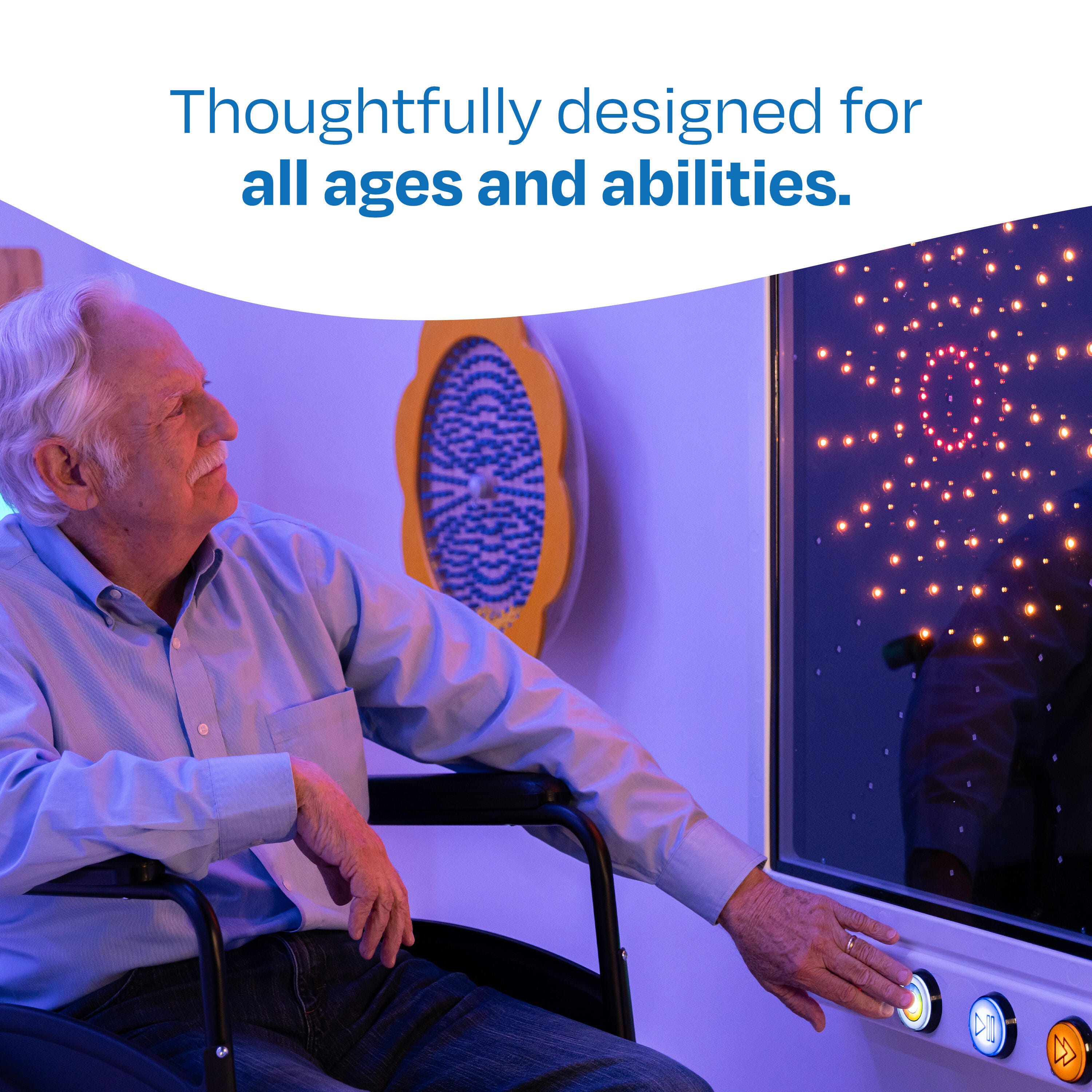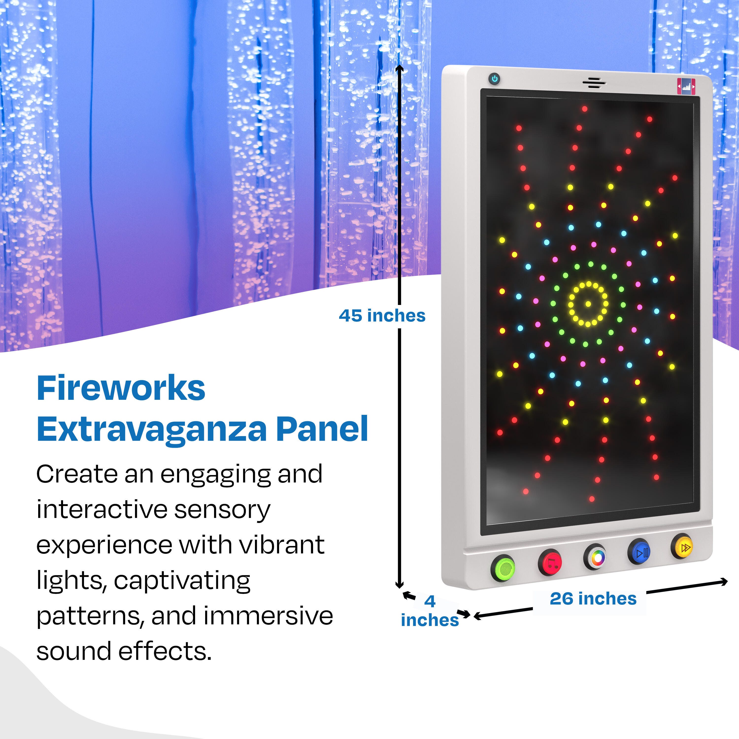 Create an engaging and interactive sensory experience with vibrant lights, captivating patterns, and immersive sound effects designed for all ages and abilities.