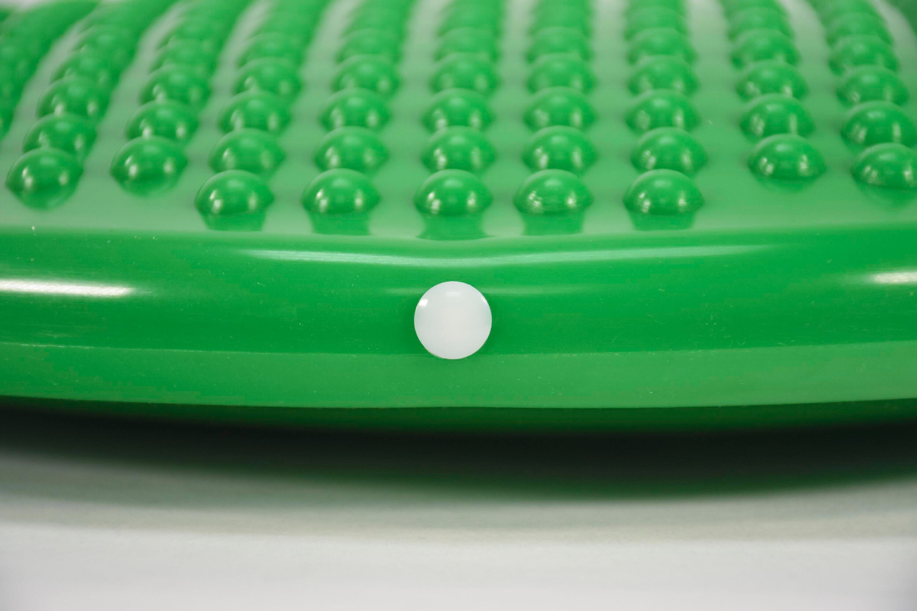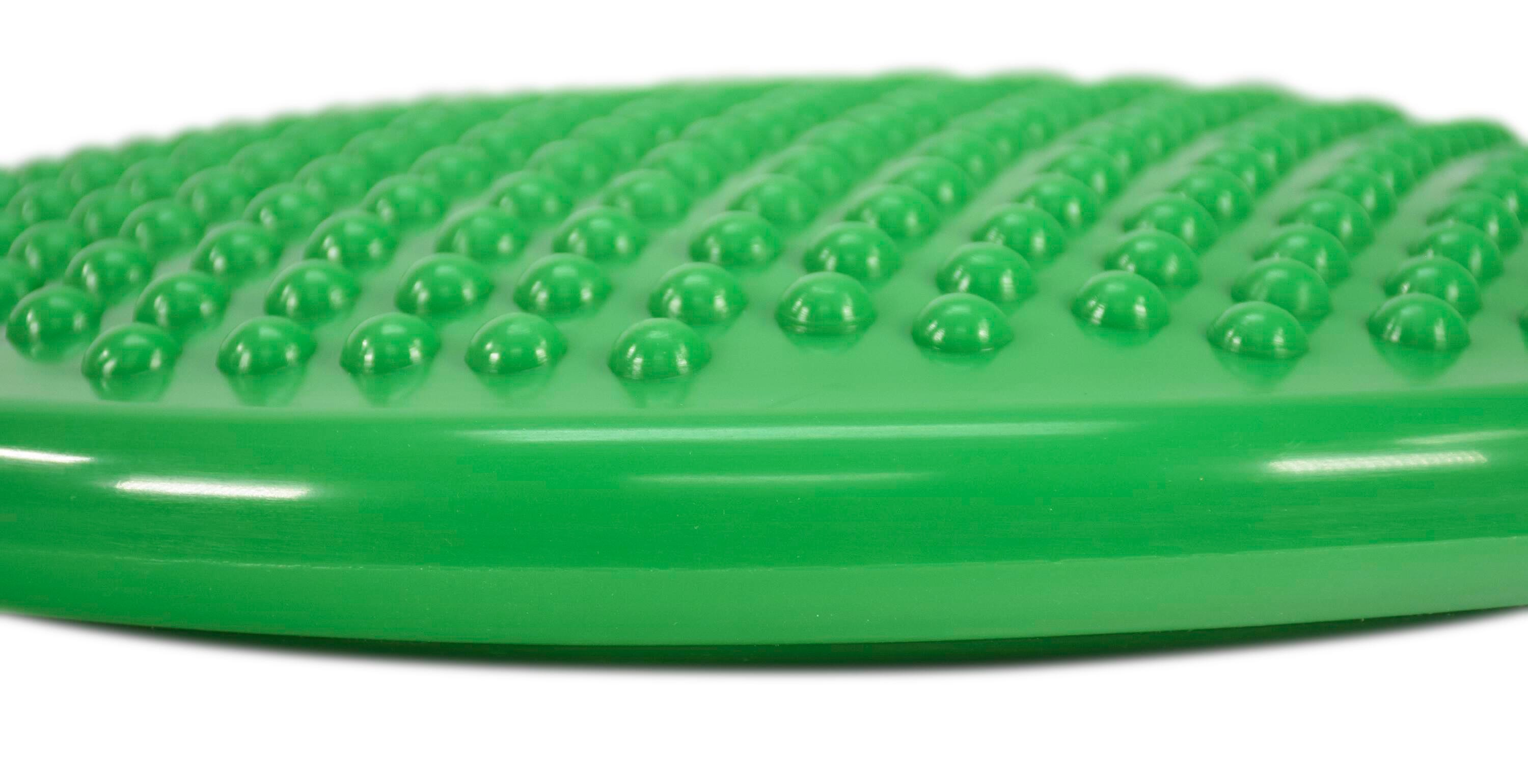 Abilitations Balance Cushion can be used to provide stability for positioning or active, free-flowing instability for the development of balance skills and core strength. Cushion will need to be inflated by a hand pump (not included). Measures 15 inches in diameter and can sustain up to 200 pounds.
