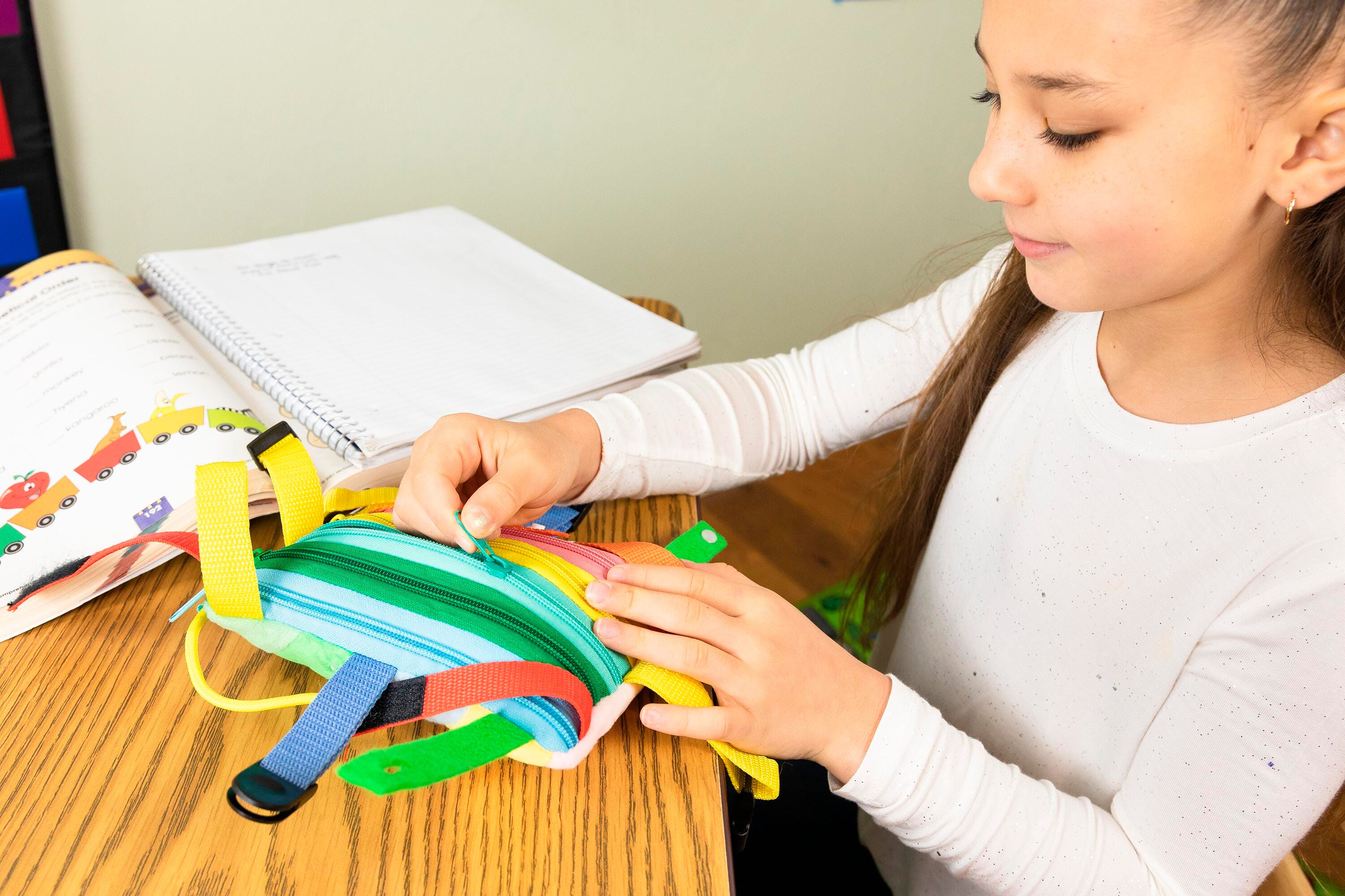 • Builds fine motor skills and hand-eye coordination through common activities like zipping and snapping