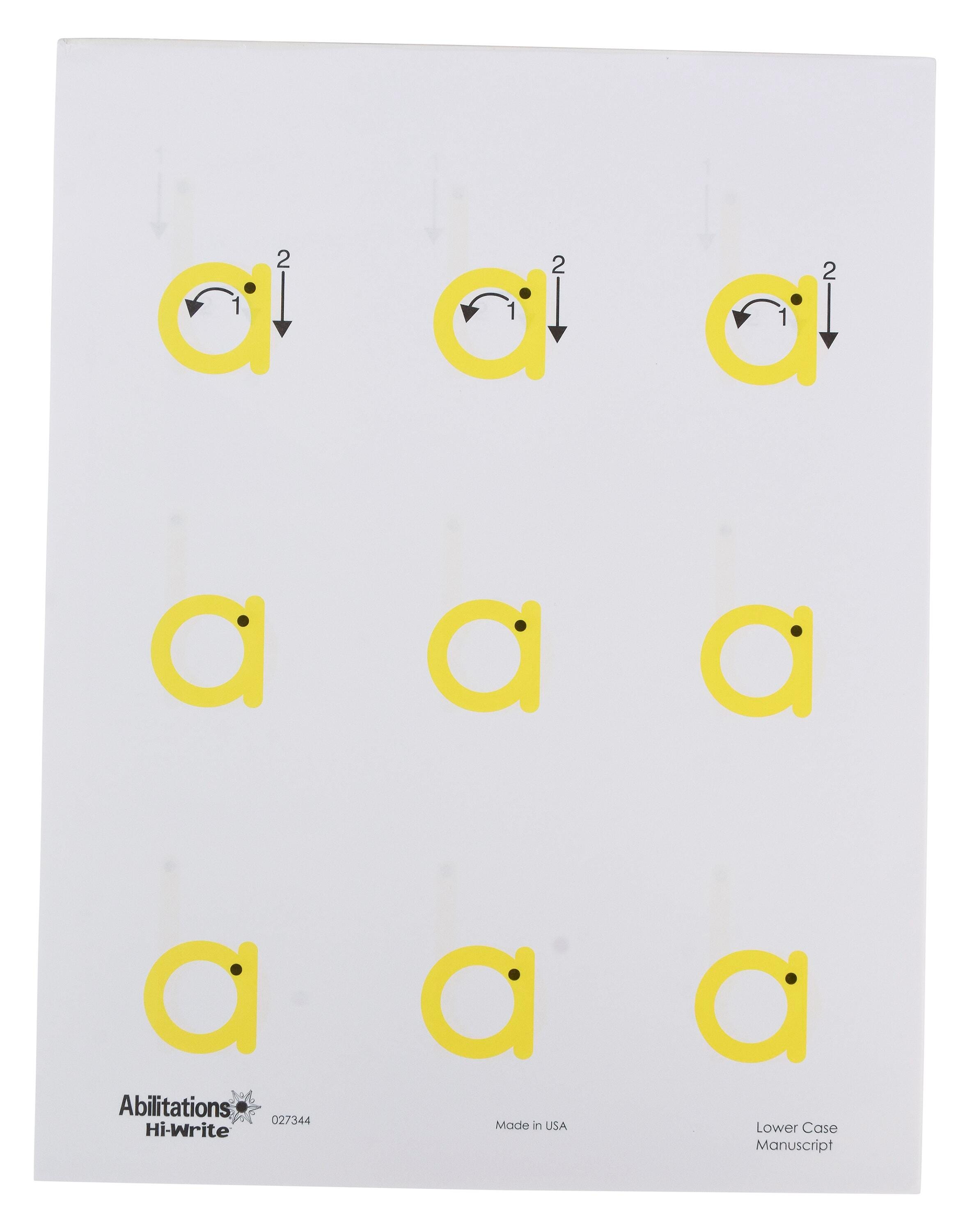 Abilitations Hi-Write lowercase alphabet paper helps improve fine motor control, legibility, and quality of written work. The paper has highlighted lowercase letters with directional arrows for correct letter formation, and can be placed on a slant board for improved visual orientation and proper wrist positioning (sold separately). The paper is versatile for use in one-on-one or small group therapy sessions, handwriting instruction, and independent writing time. The pack contains 104 sheets measuring 8-1/2 x 11 inches, with four sheets of each letter for practice. May be suitable for special needs, early childhood, and elementary learning environments. Includes an activity guide with suggestions for use.