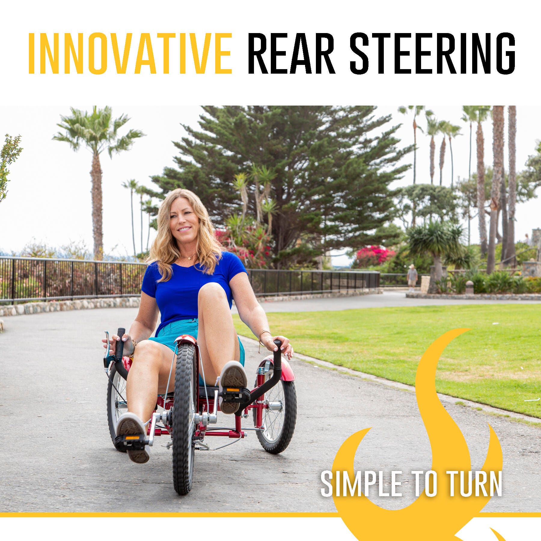 Whether you’re looking for a new hobby or a fun way to exercise with more stability than a classic two-wheeled bike, our three-wheeled adult cruiser easily adjusts for rider heights between 4 feet and 6 feet 3 inches tall. The Mobo Triton Pro is equipped with a stylish, timeless finish that offers you years of three-wheeling fun.Features