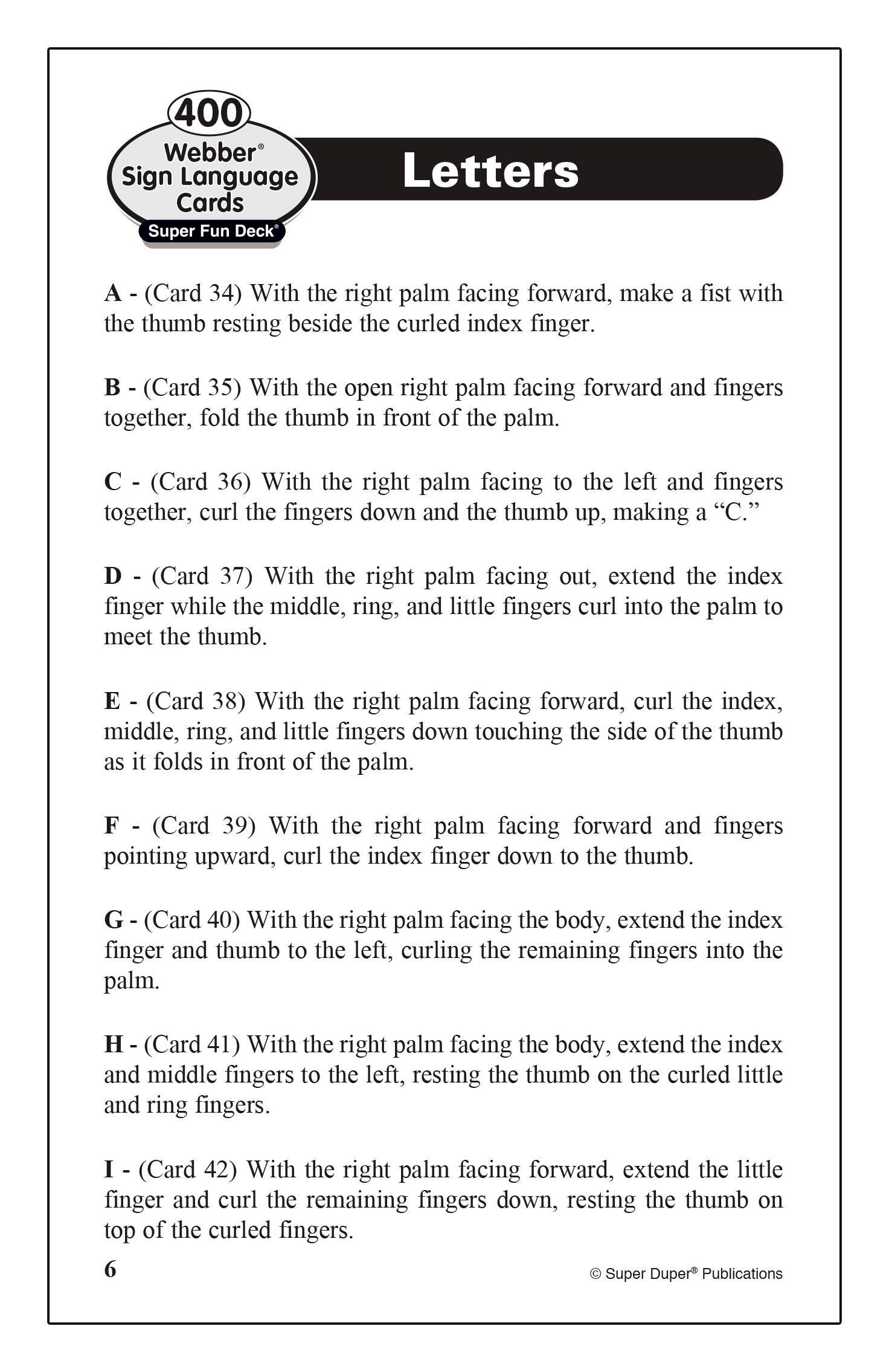 Super Duper Webber Sign Language Cards with Illustrations, Set of 400