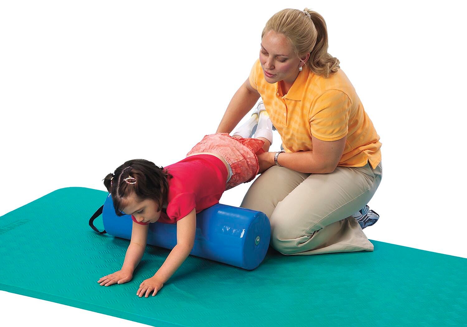 Skillbuilders rolls are made of molded foam coated with an integral washable coating. Heavy duty positioning and vestibular rolls are ideal for institutional use in physical therapy departments, home use, special education programs, pre-school programs, physical education classes and the gym. The Skillbuilders roll has an attached handle for hanging and carrying. Measures 24 L x 8 Dia inches.