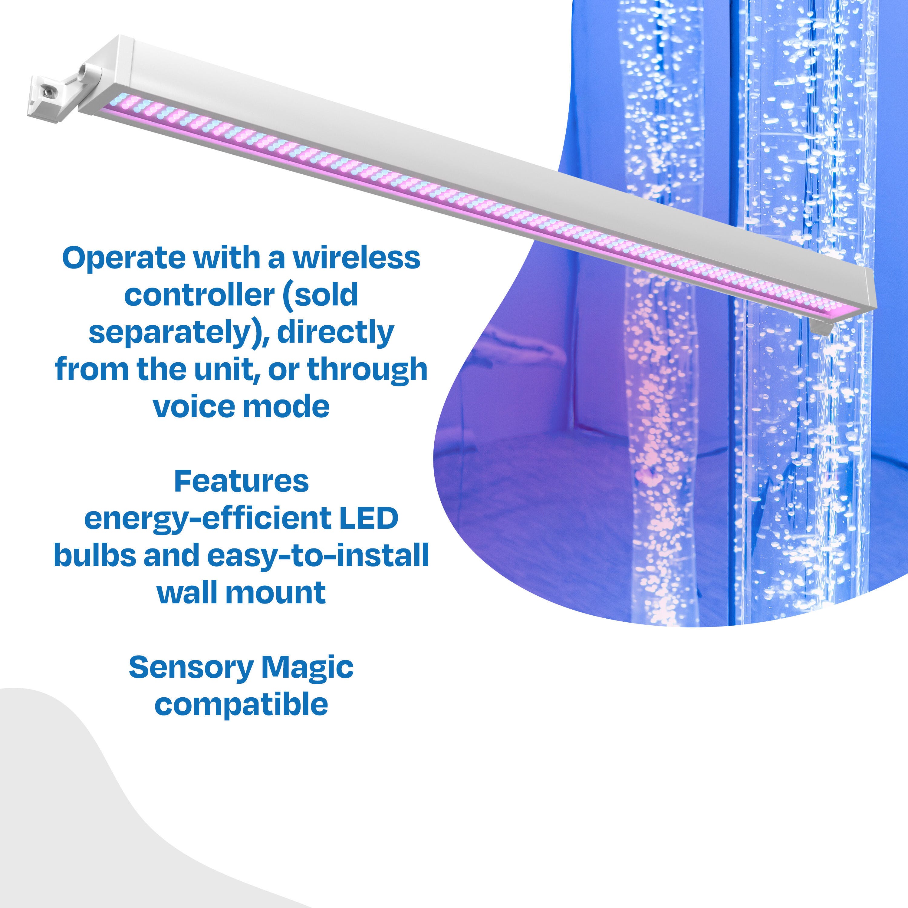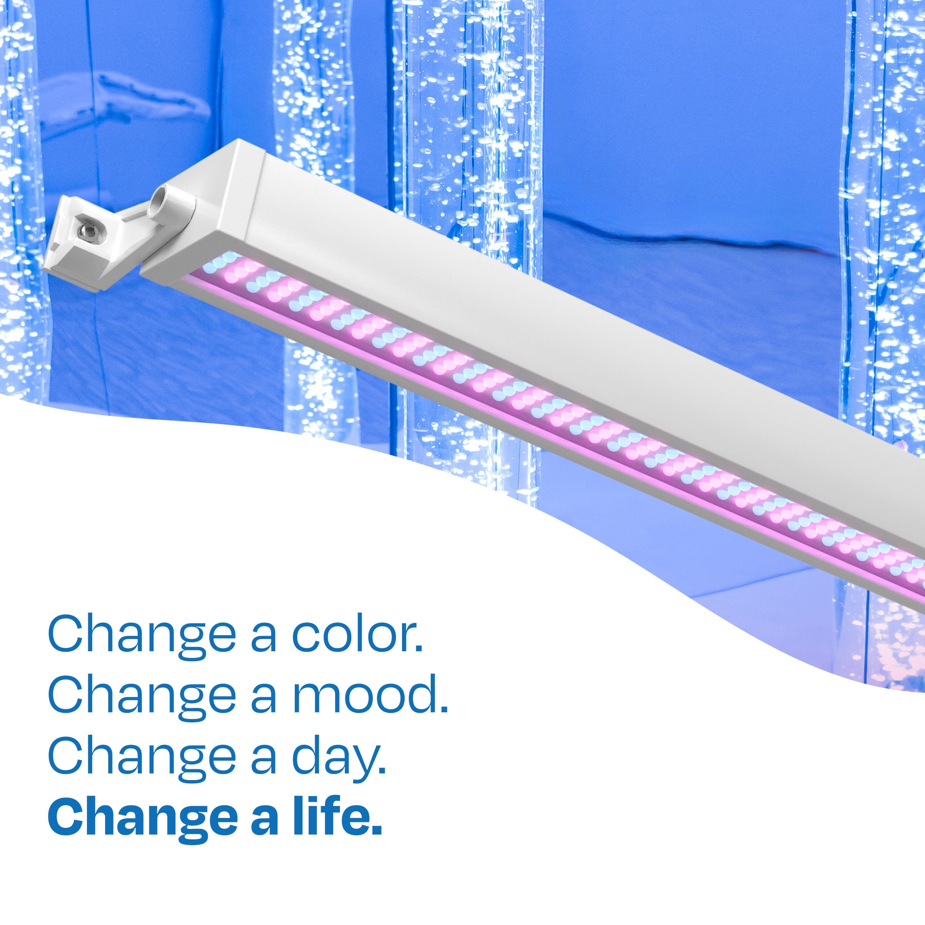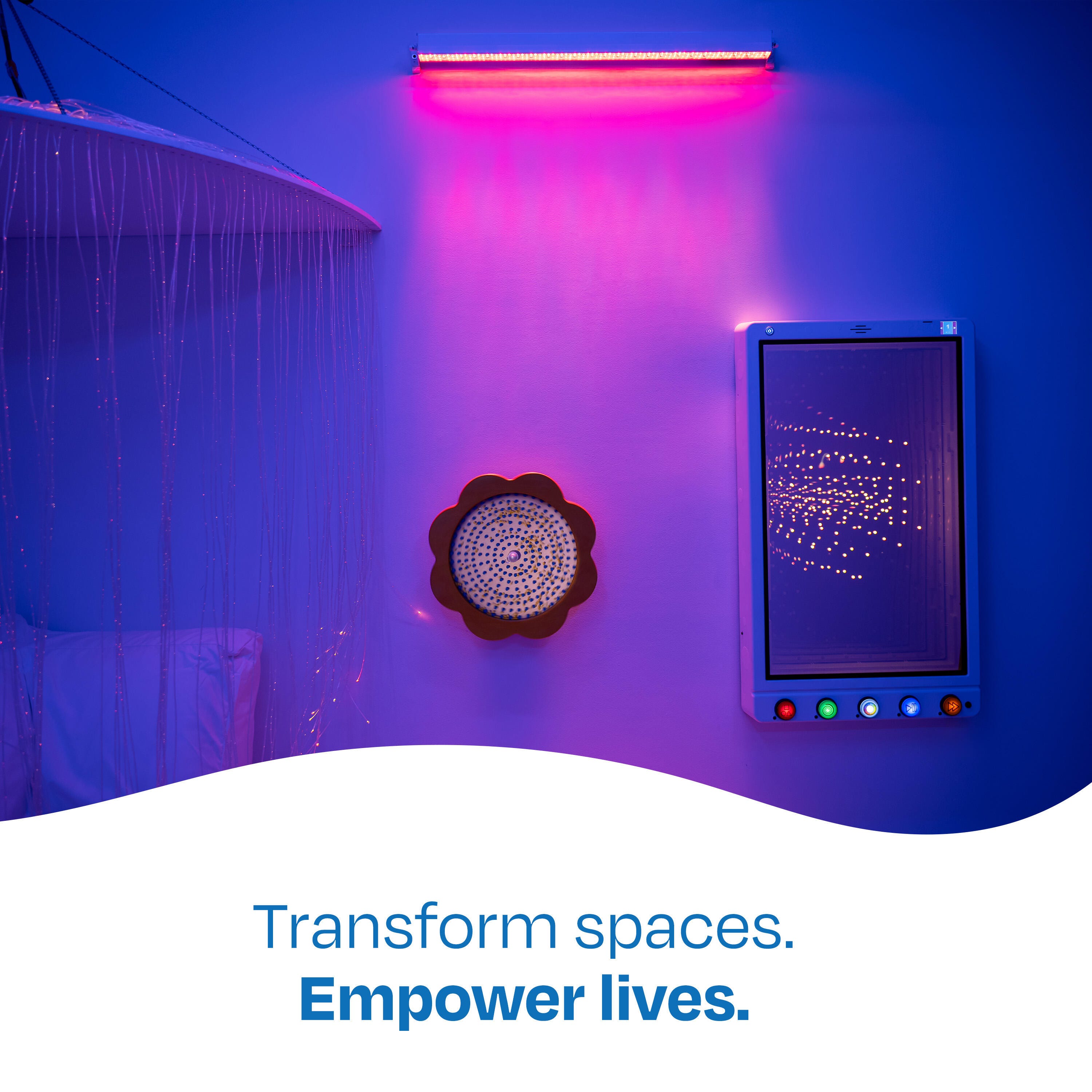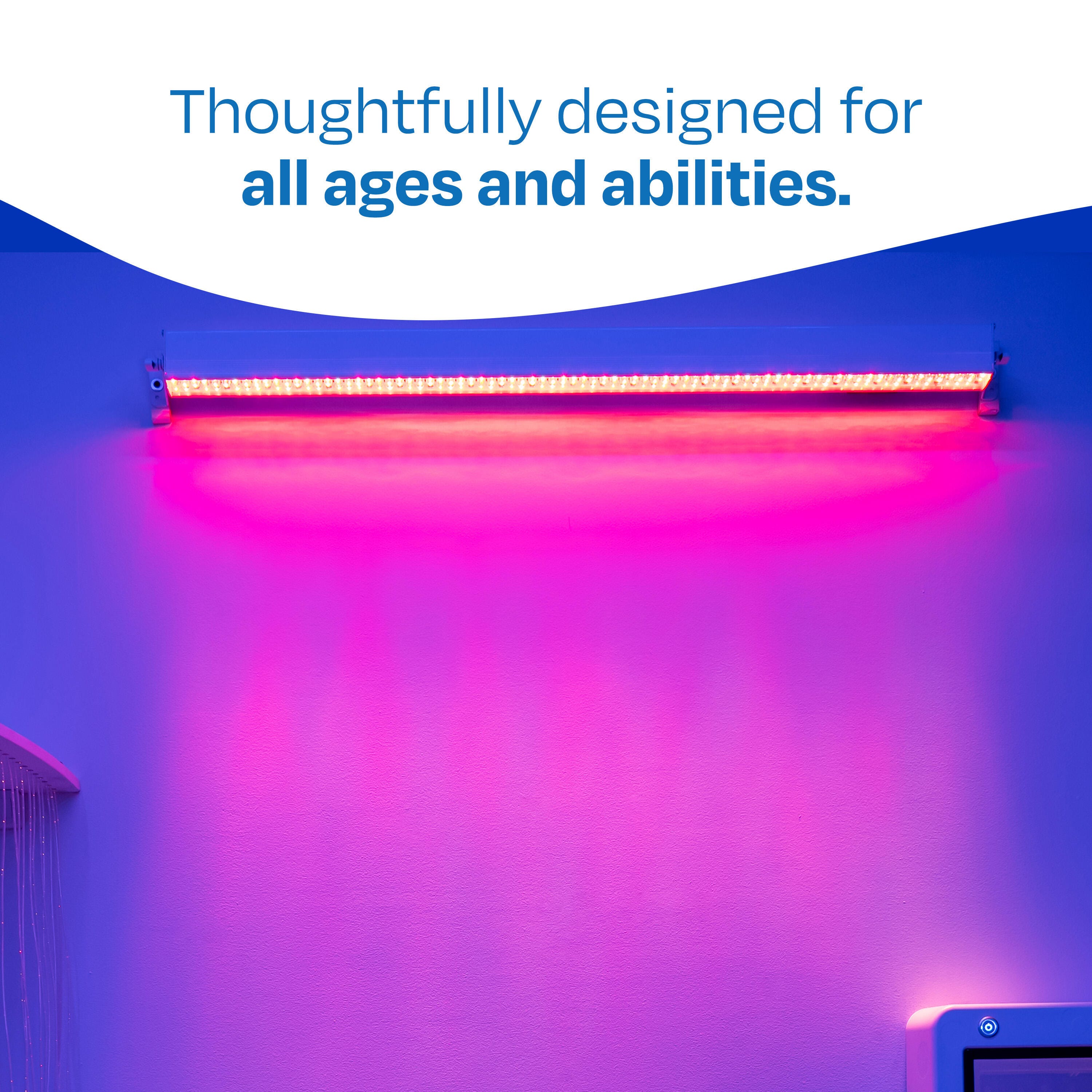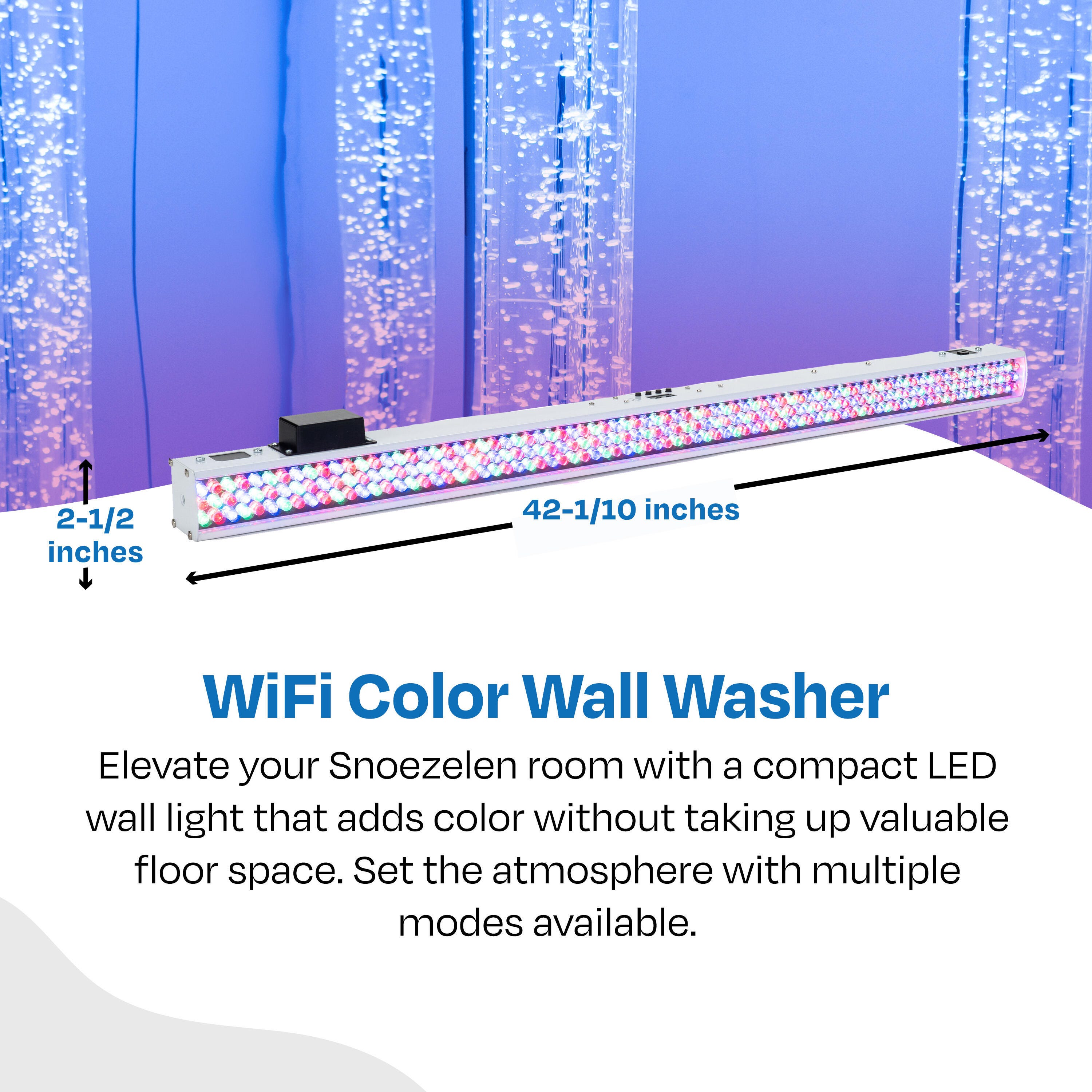 The Snoezelen® WiFi Color Wall Washer transforms any environment by providing customizable lighting that can change to fit any mood. It washes the wall with color and helps transition seamlessly between Snoezelen experiences. Whether it's relaxing light to help calm anxious minds or an exciting display to energize a space, this versatile LED light offers a wide range of options. With a voice responsiveness mode and adjustable settings, it allows users to personalize their multi-sensory experiences. This compact light can also be controlled with a wireless controller (sold separately) or directly from the unit itself. The space-saving solution is great for large spaces like classrooms, therapy rooms, and healthcare facilities. View the product brochure.