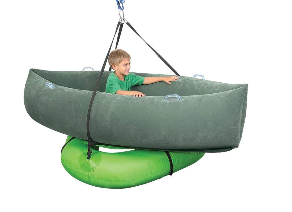 These durable, inflatable spaces are made with super-strong vinyl and have tough triple-welded seams for added strength. Most children can get in the "pod" themselves, applying deep, even pressure to the body. Rock side-to-side, for that perfect cocooning-calm. Adult supervision highly recommended. To prevent accidental puncturing, do not jump in or on the PeaPods and keep all sharp objects from contacting the surface. The XL PeaPod can accommodate up to 2 children. Exceeding these limits may cause pod to rupture and deflate. Surface washable. Measures 80 inches long. Inside seating space measures 10-1/2 inches wide. Pump not included.