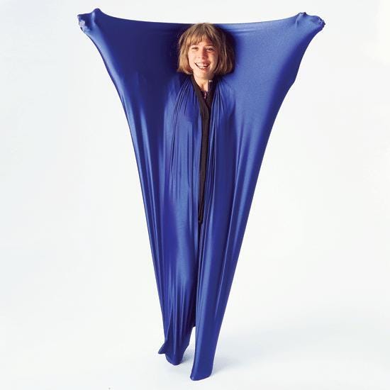 Encourage imaginative play, explore body boundaries, and more! Just step inside this stretchy, translucent fabric. Made with a touch-fastener opening for easy wear. Versatile design allows for creative movement just as much as protective hiding experience, perfect for care centers and healthcare facilities with multiple ability levels and varying needs. These translucent bodysuits are washable and measures 56 L x 28 W inches.
