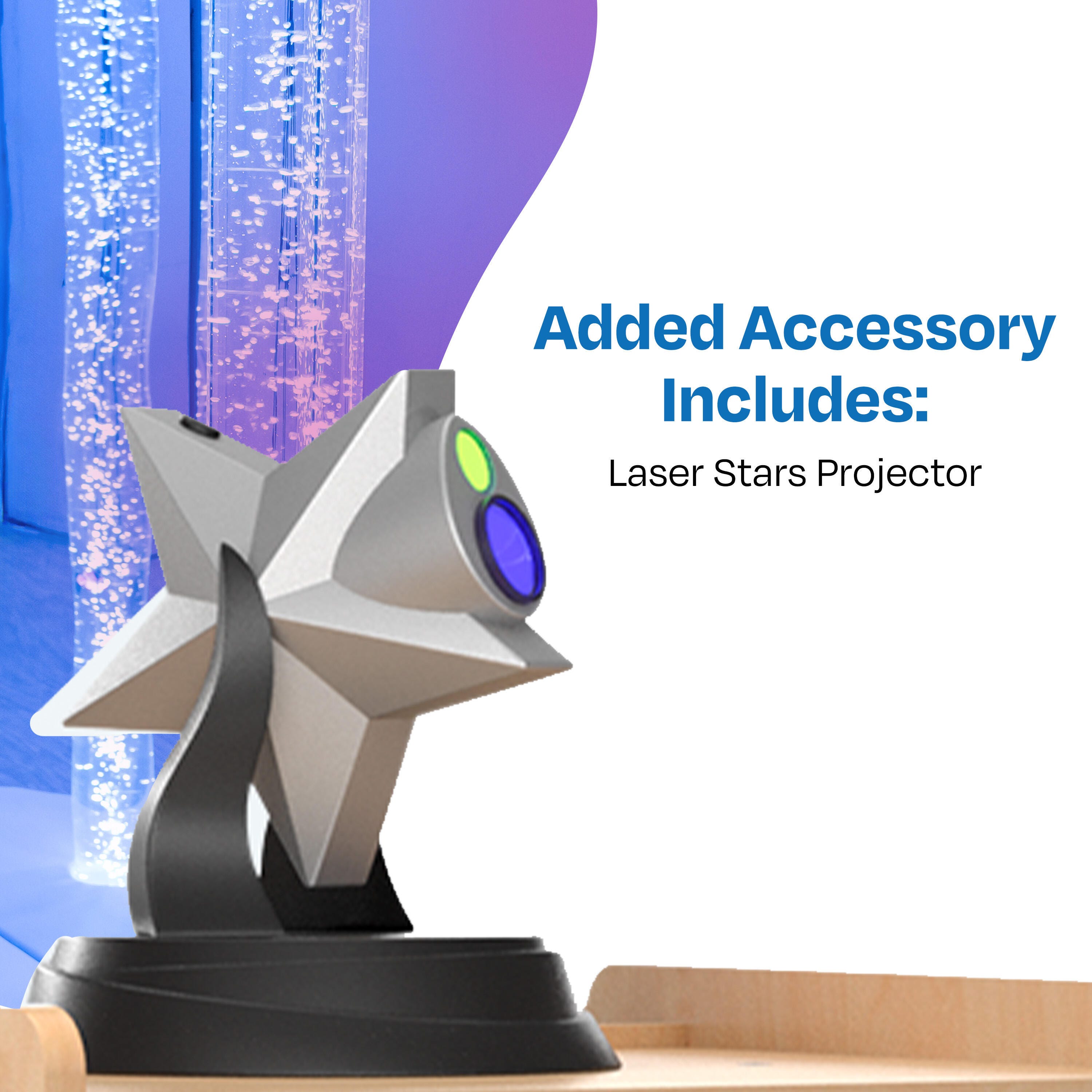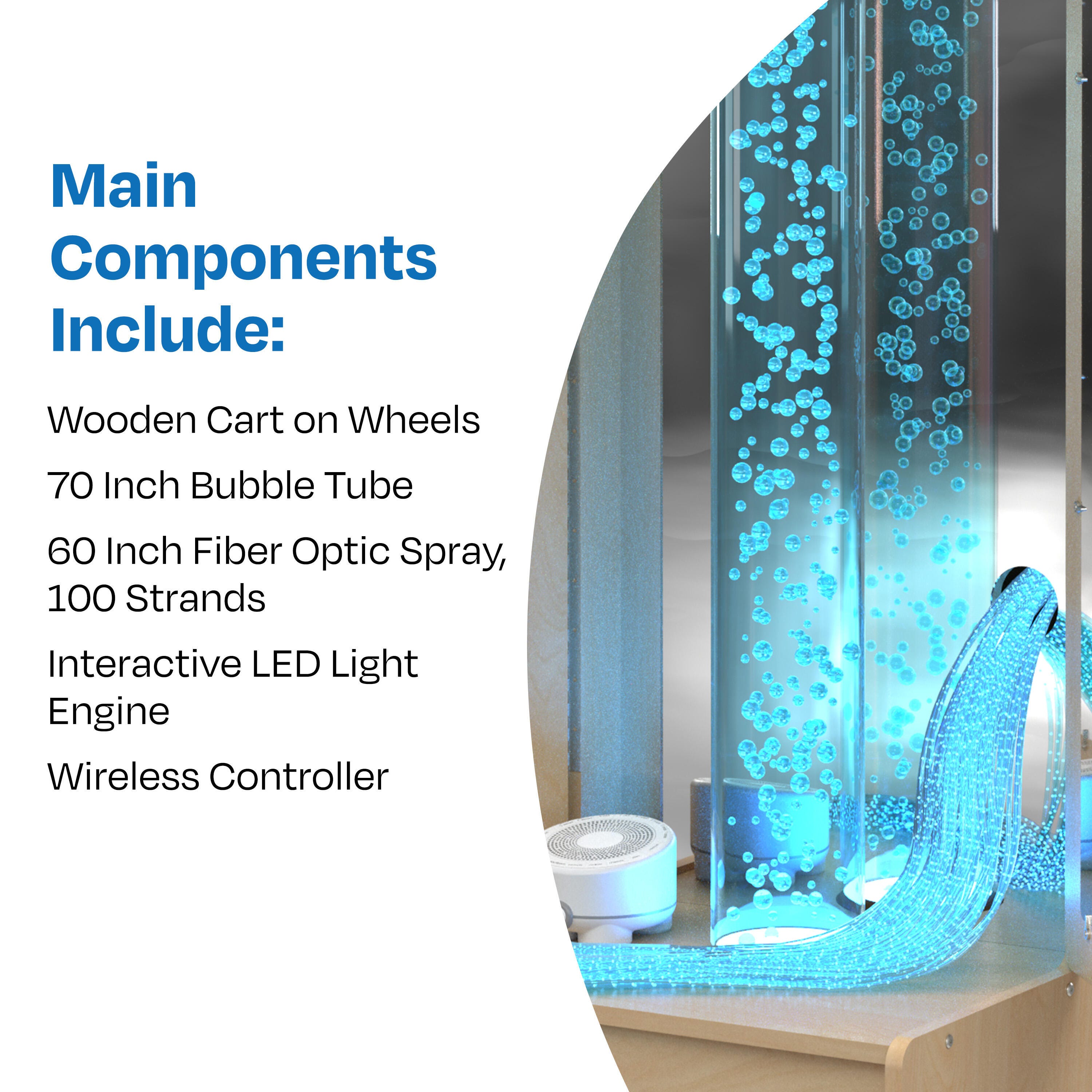 Shatterproof acrylic mirrors surround an illuminated bubble tube and fiber optic spray on the front of the cart