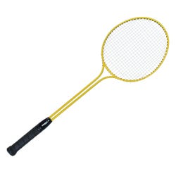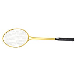 Twin Shaft Steel Badminton Racquet features a twin tempered steel shaft, braided nylon strings, and a Hi-Soft PU grip for heavy-duty use. This durable aluminum racquet was designed and built for the toughest abuse your kids can hand out. Head width is 7-7/8 inch, head length is 9-1/2 inch and racquet length is 26 inches. Sold individually.Features