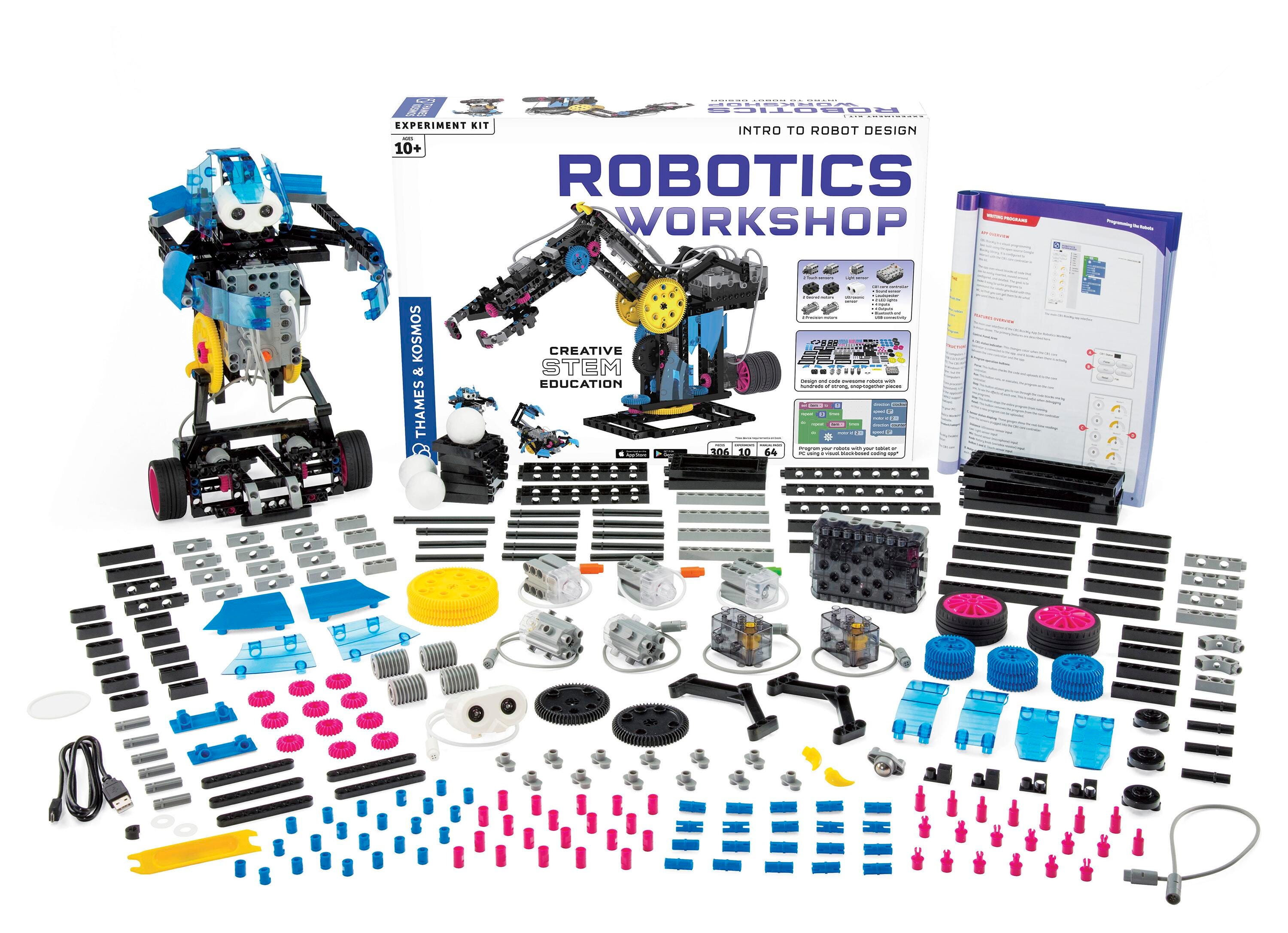 Using sensors, motors, a core controller, and hundreds of snap-together building pieces, you can follow the instructions to assemble ten different robots. The versatile parts also allow you to make robots according to your own designs. The robots can be controlled directly in real time and programmed to perform a series of commands using an easy-to-use, free downloadable app on iOS or Android tablets and Windows PCs. The app uses the open source visual block programming library, Google Blockly, to make coding fast and easy to understand. A 64-page, full-color manual features step-by-step illustrated building, programming, and operating instructions. Requires 6 AA batteries (not included) and tablet and/or PC with internet access.Device Requirements