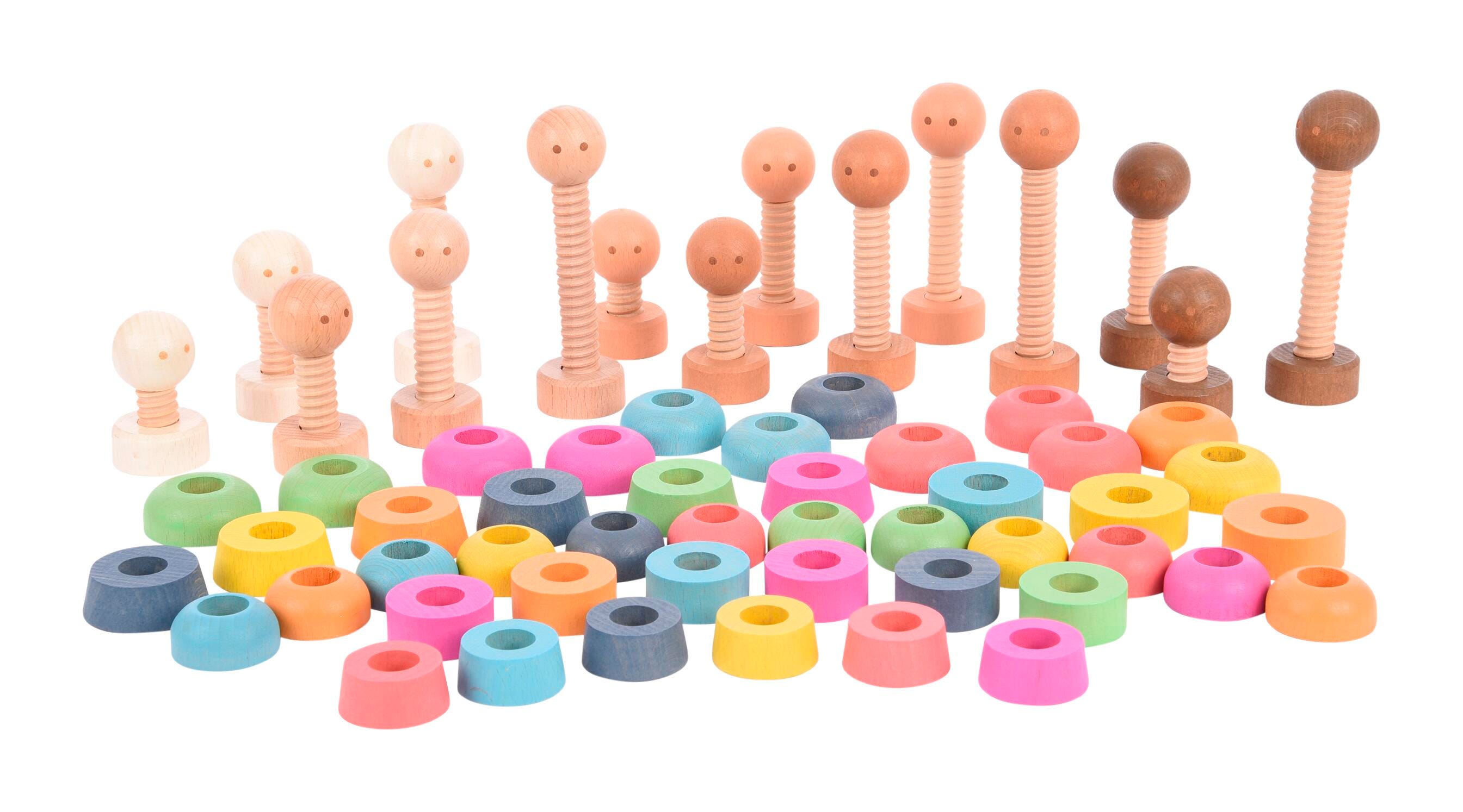 Create unique characters of different colors, shapes, and sizes perfect size for small hands. Use the "feet" to screw the nuts in place. Made from high-quality beechwood. And the high-quality materials are designed to last for years of classroom use.