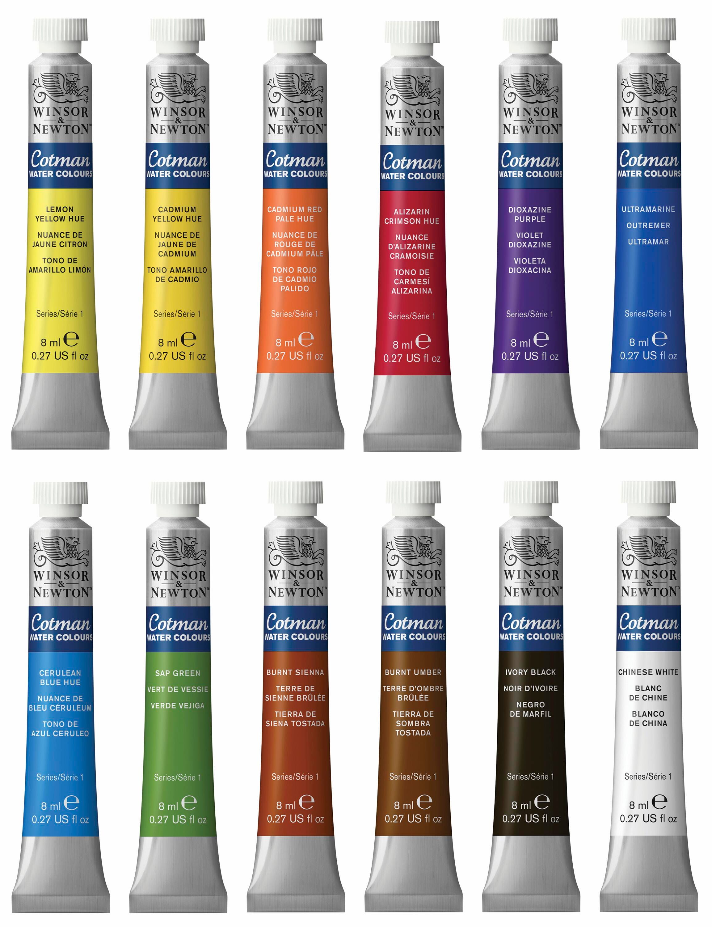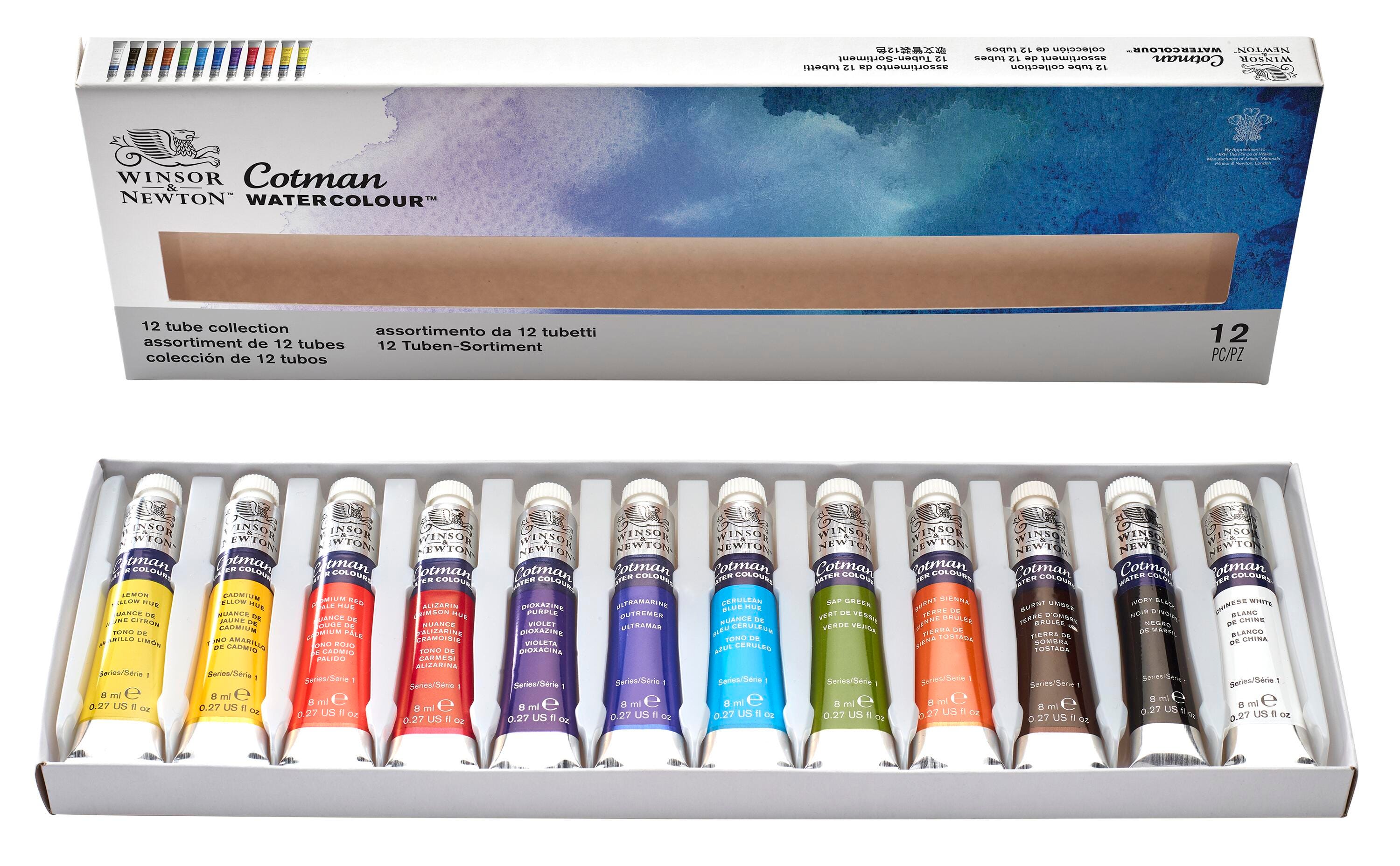 Winsor & Newton Cotman Watercolour Set, 0.27 Ounce Tubes, Assorted Colors, Set of 12